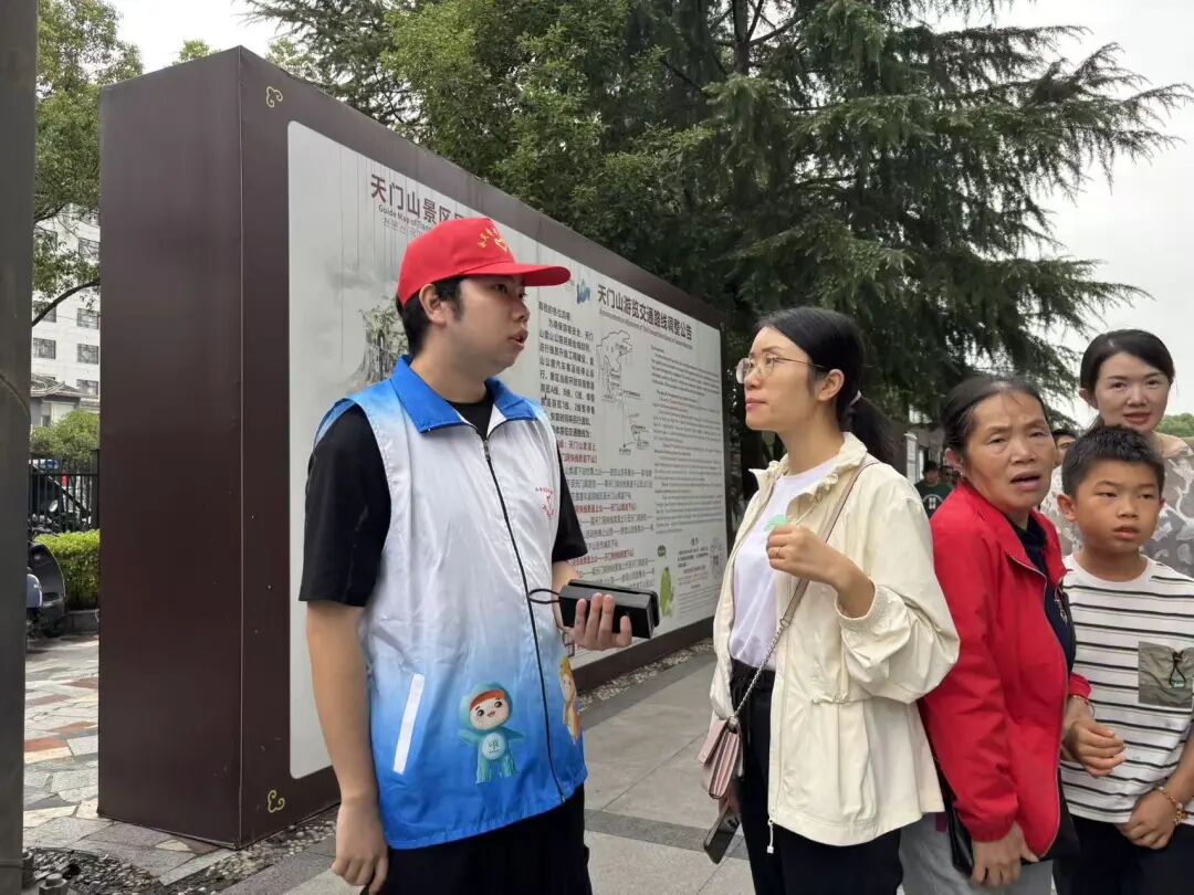“小孩儿和70岁以上老人更适合哪条游览线路,全程需要多长时间?”来自贵州的杨先生带着父母和两个孩子咨询购票事宜,青年志愿者黄碧武拿出景区导览图边说边标注重点,耐心解答他们的问题,并帮助他们完成网上购票。杨先生拿着地图笑着称赞:“这样的服务既专业又贴心,带娃带父母出游一点都不慌了。”