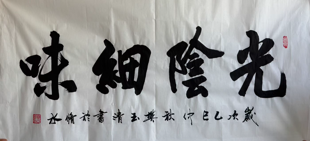 我静静看着,心中蓦然浮现四个字,便轻声请求:“先生,能否为我写一幅‘光阴细味’?”
