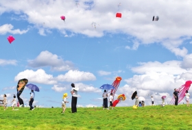 6日,永州市蓝山县楠市千亩草坪,风筝表演精彩纷呈。当日,蓝山县举办“筝舞蓝天”主题风筝节,专业团队与风筝爱好者一道放飞各式各样的风筝。图/通讯员黄春涛