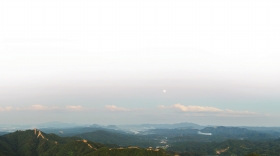 6日,在湖南省怀化市溆浦县大江口镇龙舟赛观景台拍到的月亮。图/通讯员李尚引