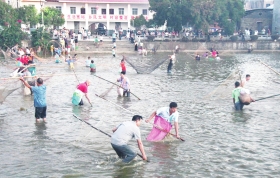 6日,中秋节,永州市江永县上江圩镇兴福村,村民们欢聚一“塘”捕鱼,欢庆传统佳节。 图/通讯员田如瑞