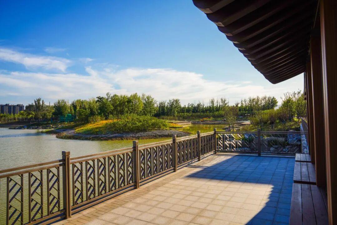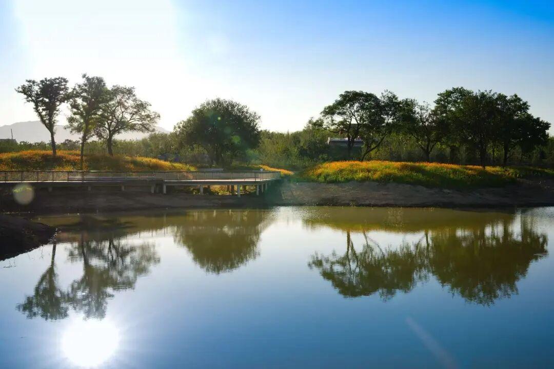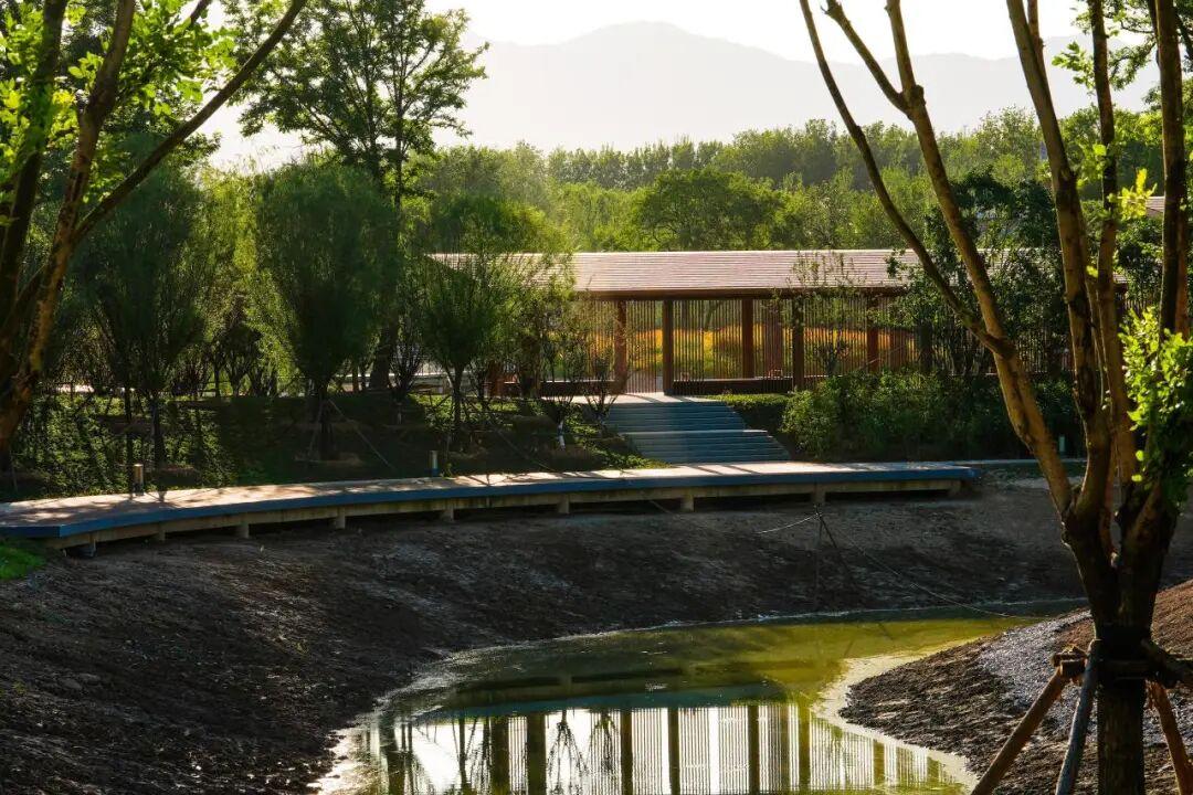 公园在规划设计之初,通过多次深入的调研、勘测,将原来村中的大树进行了充分保留。“我家就在这棵树附近,现在真是变得越来越美了。”重回玉河湿地公园,村民们感叹道。除此以外,横跨湖中的“秋堤”也曾是村中进出道路,行走其间,两侧旧貌换新颜,点点乡愁寄于山水之间。