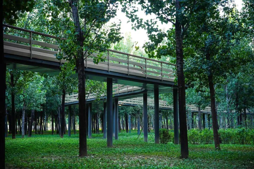 漫步公园中,可以窥见如“一片青瓦”般飞架山间的观景台,也会遇见如“青砖镂月”般横跨湖面的步行桥,除履职原本服务性功能外,又将传统文化进行现代诠释和表达。
