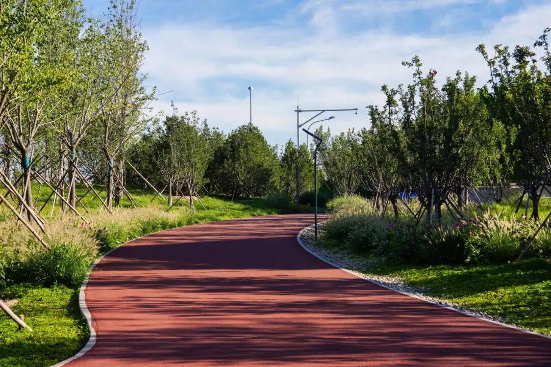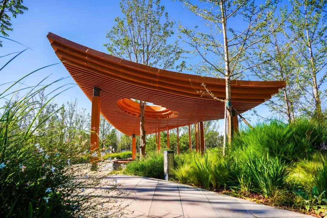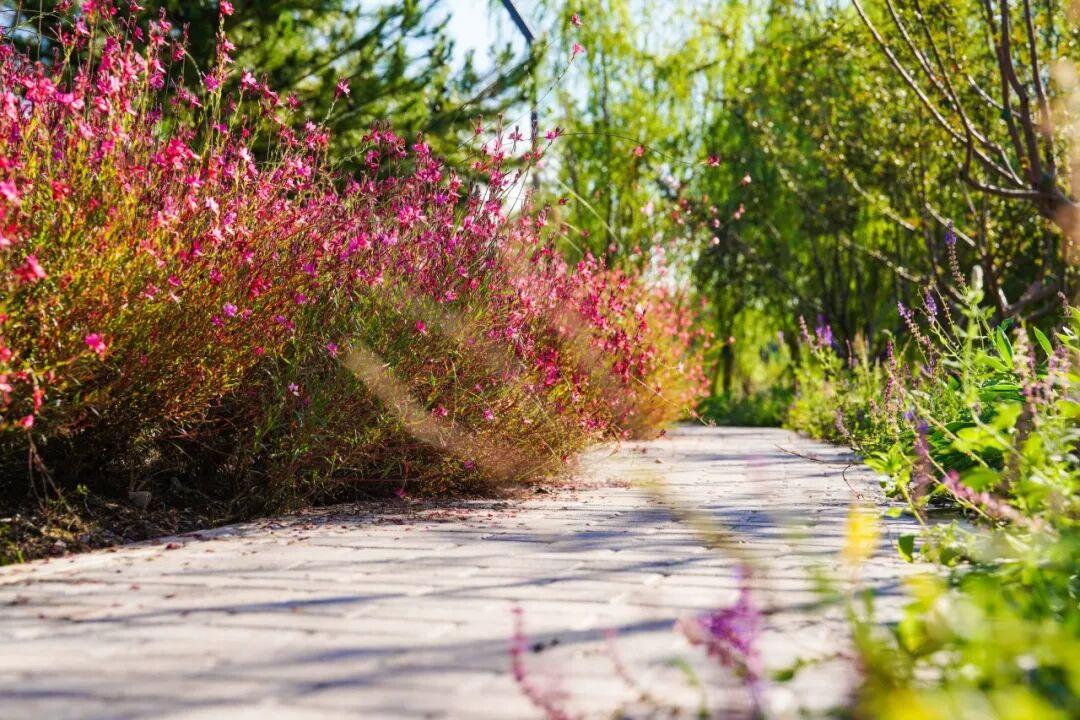 公园在保留原有林木的基础上,新种植乔木68种,其中观花、观叶植物占比达到75%,按照拟自然林的方式,塑造出花木静赏、百草芬芳、四季多姿的植物群落,在上下天光之间,形成流动的彩色印记。