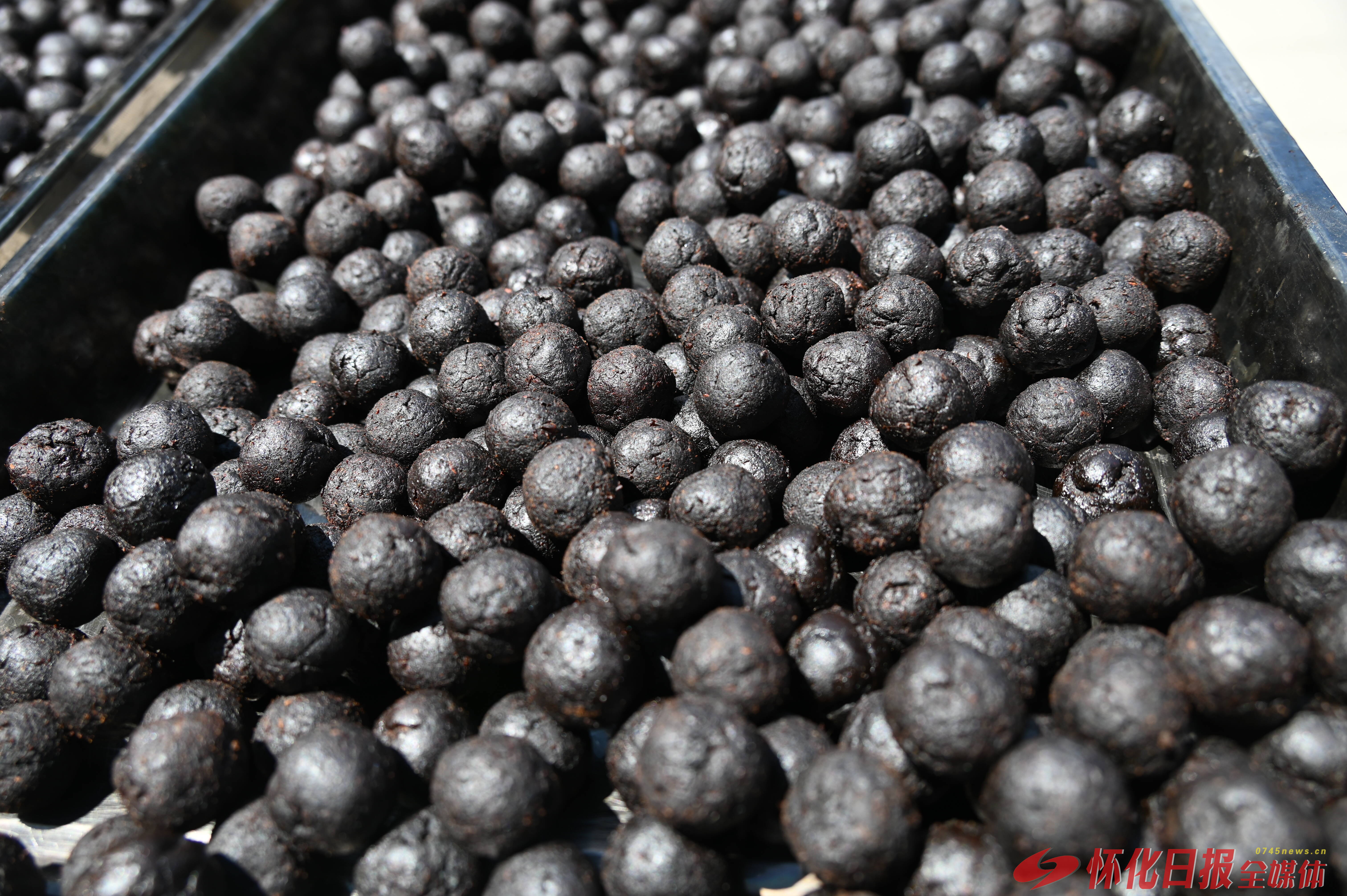 (在晒场上晒制黄精丸。怀化日报全媒体记者 杨丽红 摄)