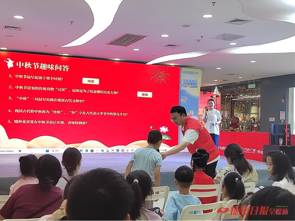 活动现场氛围热烈。主持人首先讲解中秋节起源与习俗,从《周礼》记载到嫦娥奔月传说,再到吃月饼、赏月等习俗,让孩子们深化对中秋文化的认知。随后的趣味问答环节,围绕中秋历史、诗词等出题,孩子们踊跃抢答,答对者获赠礼品;“中秋猜猜乐”环节,孩子们通过表情符号快速猜成语、诗句,展现传统文化积累。