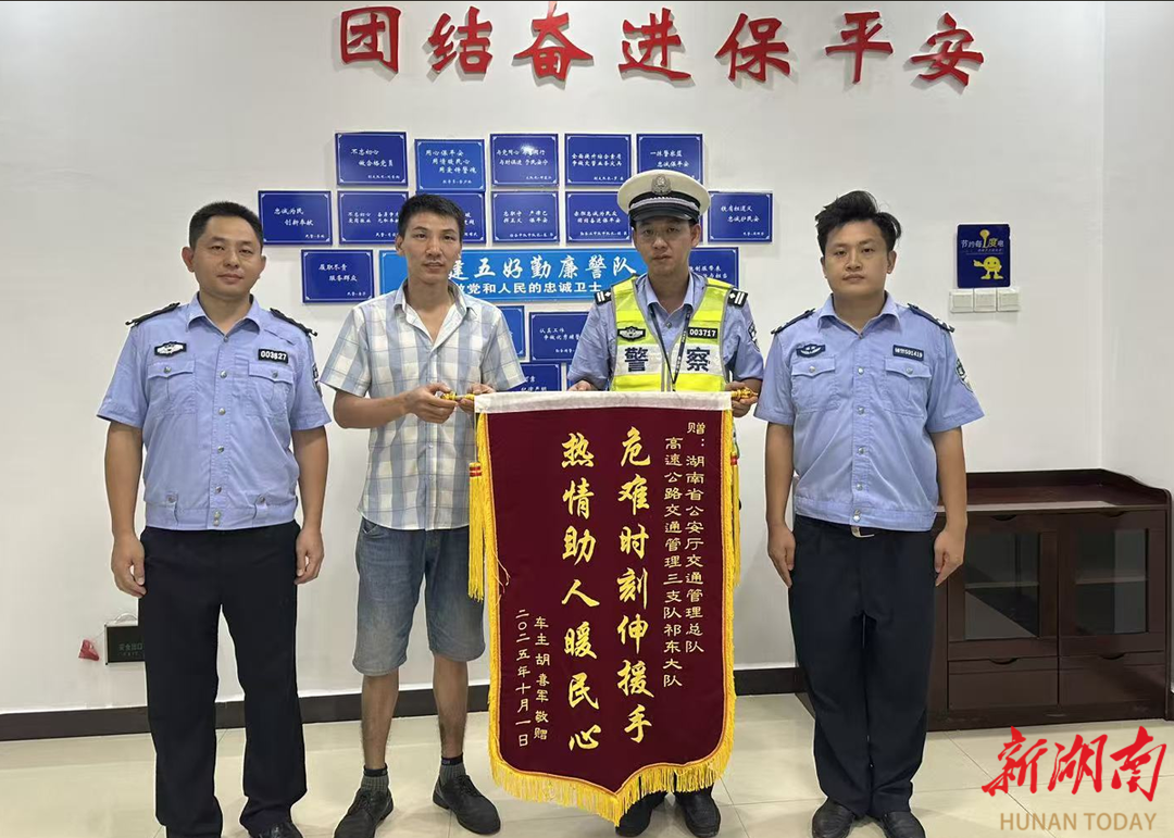 10月1日上午,祁东大队接到报警求助电话称,有一辆从广州返回祁东的小车在距离白鹤铺收费站出口2公里处燃油耗尽,车辆急需救援。民警立即携带备用汽油赶赴现场,做好安全防护后,和车上人员协力将车辆推至安全地带,最终车辆顺利加注汽油重启。下午,驾驶人专程到大队送来锦旗,再三感谢交警的帮助。