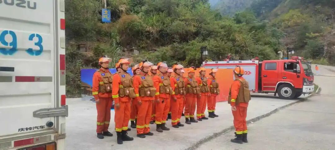 新邵县应急管理局派出综合应急救援大队,在白水洞景区执行森林防火与旅游安全值守任务。