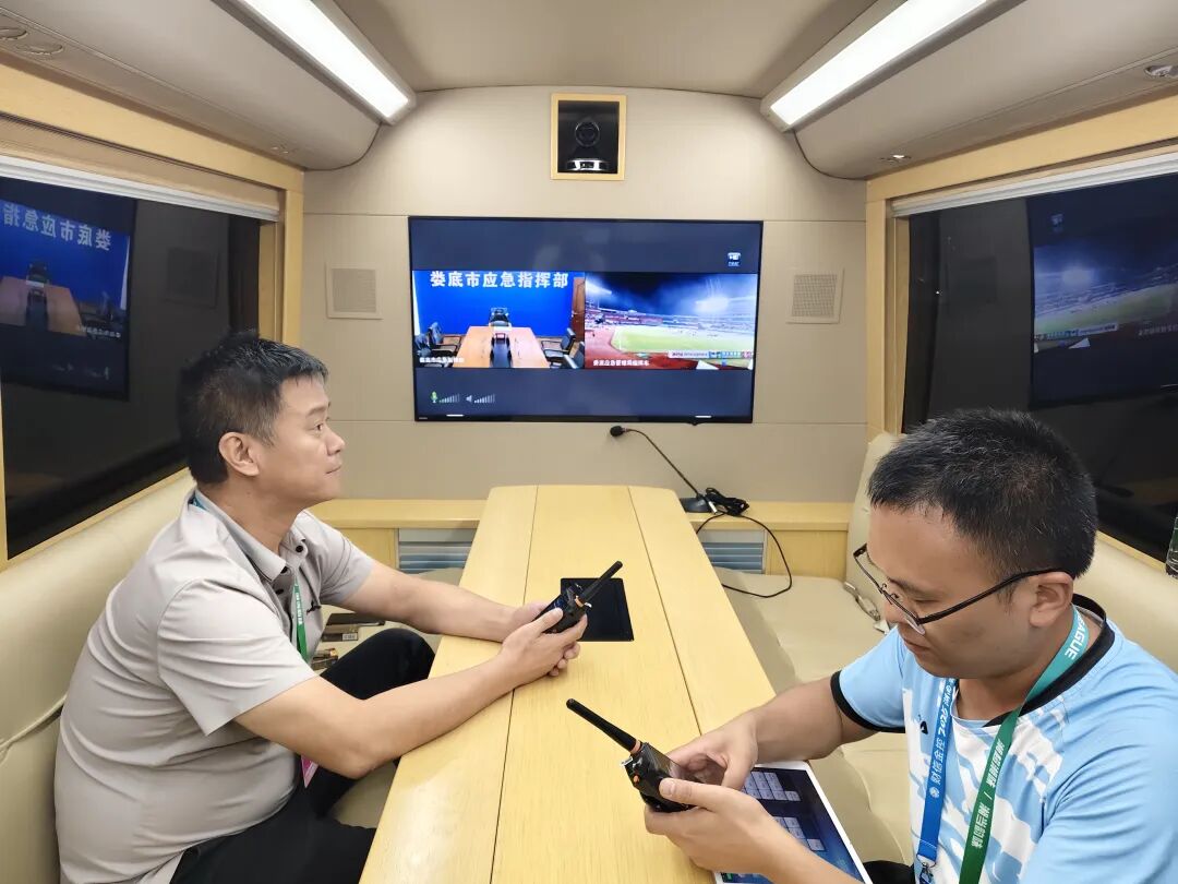 10月4日,怀化市、鹤城区两级应急管理部门为“湘超”联赛提前部署370M无线通信网,确保赛事安全有序。