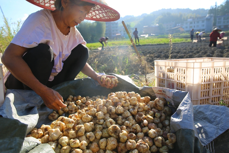 10月7日,隆回县金石桥镇绿远一线种植合作社的农民在筛选龙牙百合种。寒露将至,各地农民抢抓农时开展农事活动。曾勇 摄(湖南图片库)