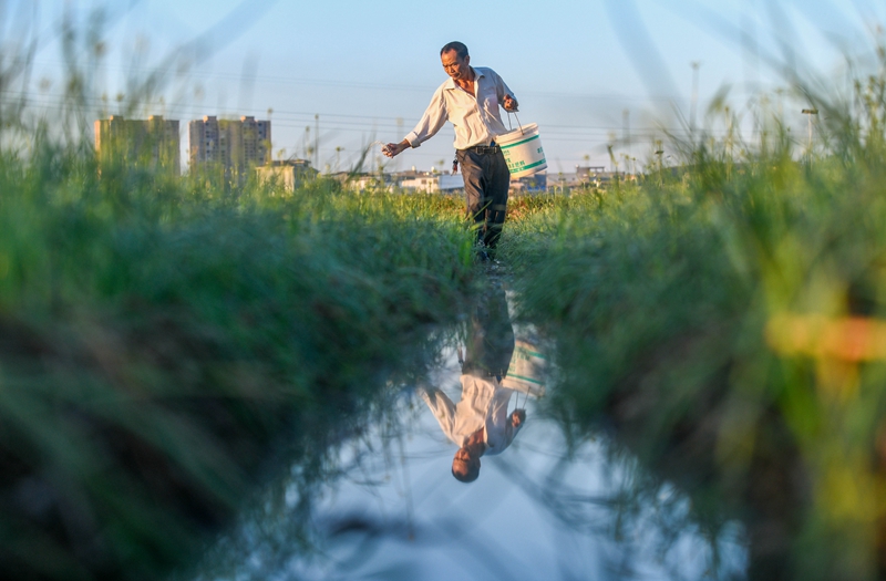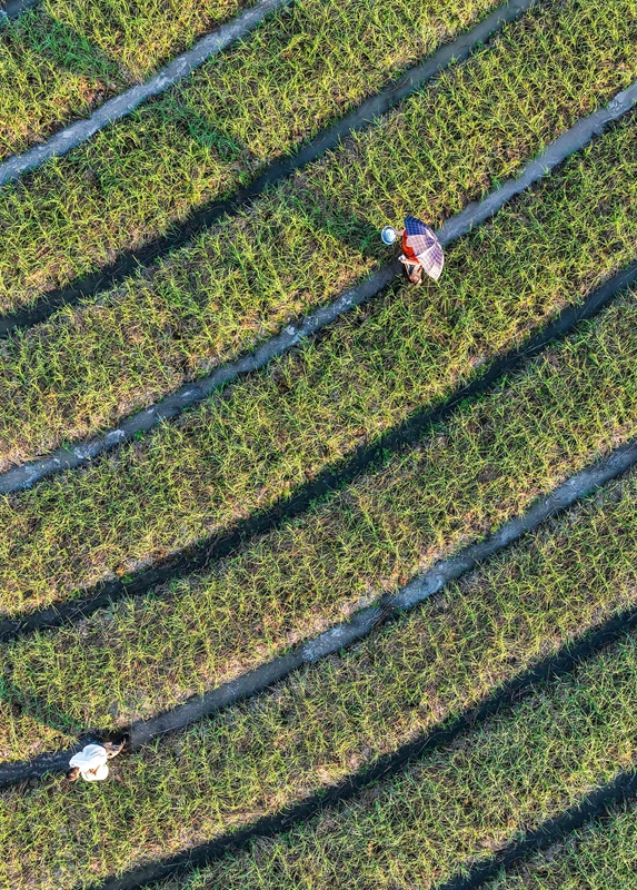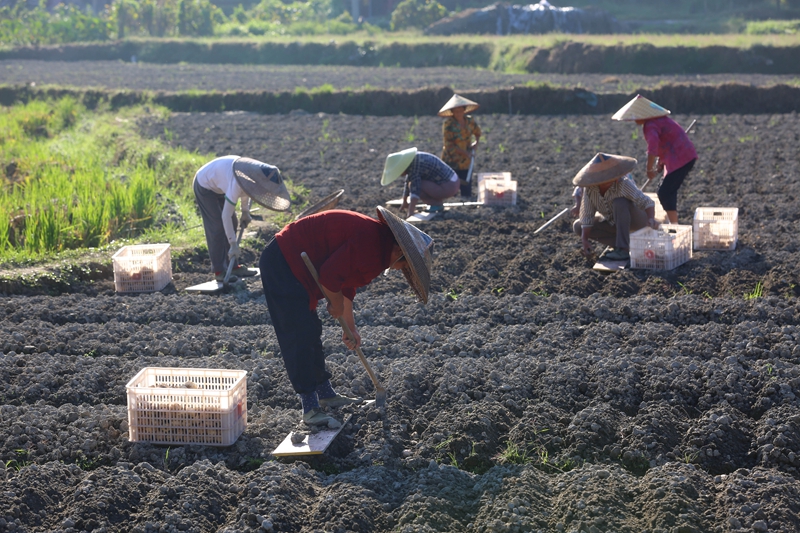10月7日,道县营江街道阳乐田社区,农民在田间管护藠头。寒露将至,各地农民抢抓农时开展农事活动。蒋克青 摄(湖南图片库)