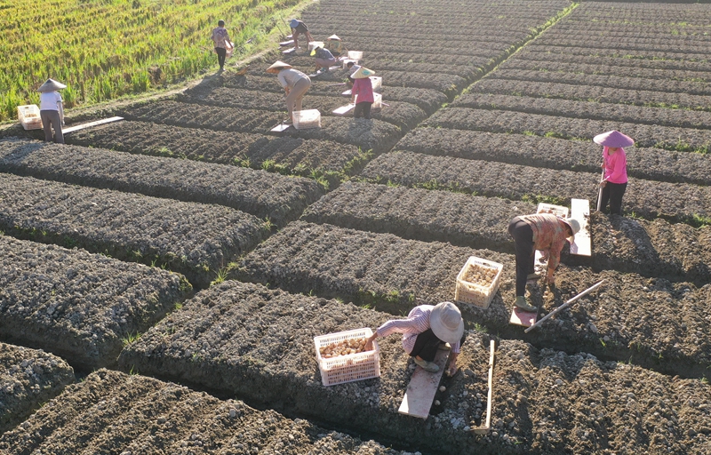 10月7日,隆回县金石桥镇绿远一线种植合作社的农民在种植龙牙百合。寒露将至,各地农民抢抓农时开展农事活动。曾勇 摄(湖南图片库)