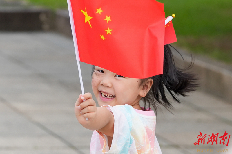 10月1日,湖南烈士公园,小朋友手举国旗,庆祝国庆。湖南日报全媒体记者 辜鹏博 摄