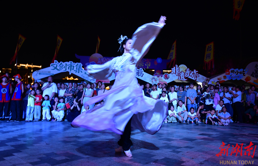 10月6日晚,吉首市乾州古城,演员在表演“拜月”文艺节目。姚方 杨燕萍 摄影报道(湖南图片库)