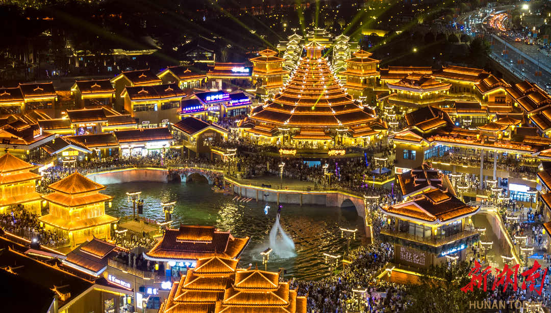 在长沙,明艳的“中国红”在街头巷尾飘扬;在怀化,市民畅游榆树湾文旅商综合体;在张家界,人们走进武陵源领略特色风情;在郴州,湘超联赛激战正酣……