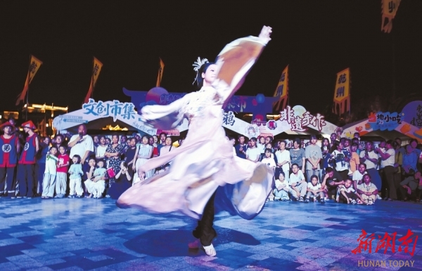 10月6日晚,吉首市乾州古城,演员在表演“拜月”文艺节目。姚方 杨燕萍 摄影报道(湖南图片库)