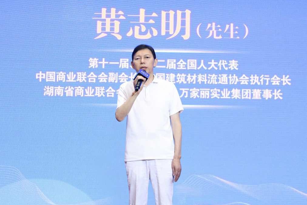 表彰大会上,中国商业联合会副会长、中国建筑材料流通协会执行会长、湖南省商业联合会主席、万家丽实业集团董事长黄志明致辞。他表示,万家丽始终坚持“一切为了消费者,为消费者的一切”的宗旨,以“大而专、专而全、全而精”的理念不断完善业态布局,推出城市值机、离境退税、名车展示交易等创新服务,着力打造更便捷、更开放、更有温度的商业环境。