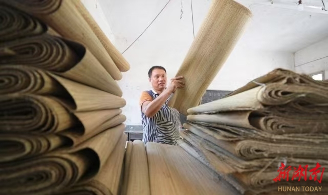 在新亿席草工艺品有限公司,企业采用“基地+农户+公司”运作模式,已与1100户种植户形成利益联结,公司被衡阳市政府授予“非遗保护传承基地”。