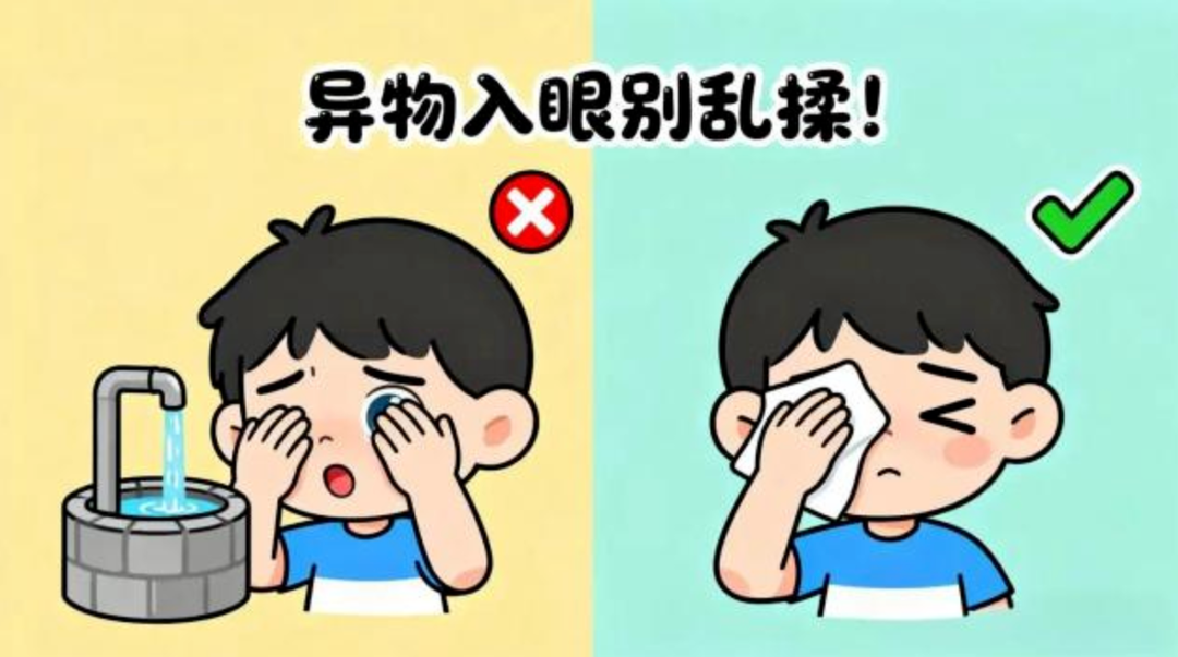沙尘等细小异物入眼,可先借助泪水或眼药水自然冲洗——轻轻捏住上眼皮向上提,等待泪腺分泌泪水冲掉异物;若有随身携带的眼药水或纯净水,也可轻轻冲洗,若冲洗后仍有不适,需及时就医。