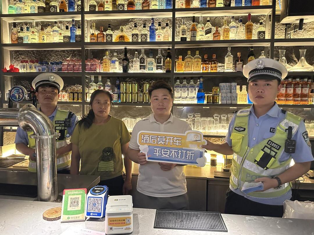 在一家小酒馆门口,民警向聚餐的食客们详细讲解酒醉驾的危害以及“一盔一带”的重要性:“哪怕只喝半杯啤酒,反应速度也会慢30%,千万别抱有‘离家近’的侥幸心理。正确佩戴头盔、系好安全带,能把死亡风险降低60%-70%。”同时,民警还敦促酒馆服务人员和老板履行监督、提醒义务,从源头上减少涉酒驾驶行为。酒馆老板积极配合,主动将“酒后禁驾”提示牌贴在吧台:“放心,喝酒的客人我绝对不让他开车走!”