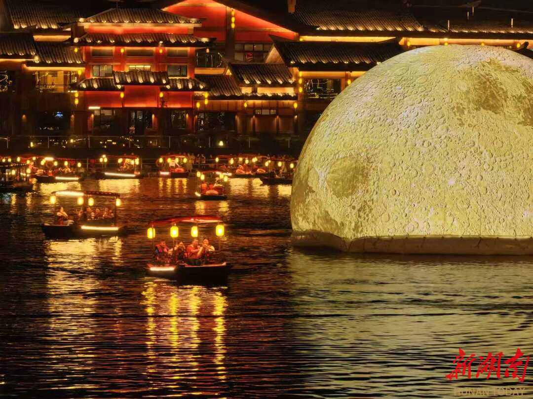 三大特色文旅项目成为游客打卡热点。“时光之城1944”化身“时光机”,千灯映夜、烟花绽放间,游客持“时光护照”打卡集章,听怀旧音乐会、看爱国故事演绎,沉浸式触摸老衡阳的烟火记忆;南岳里庙会街区成“非遗秀场”,水上火壶、打铁花轮番上演,飘扬的红旗、水上超级月亮引游人打卡,中秋夜的传统拜月仪式更让节日氛围拉满;“祝融探火”太空馆变“科普乐园”,航天泡泡秀、气球雨狂欢搭配航空航天科普,为亲子家庭打造“边玩边学”的快乐假期。