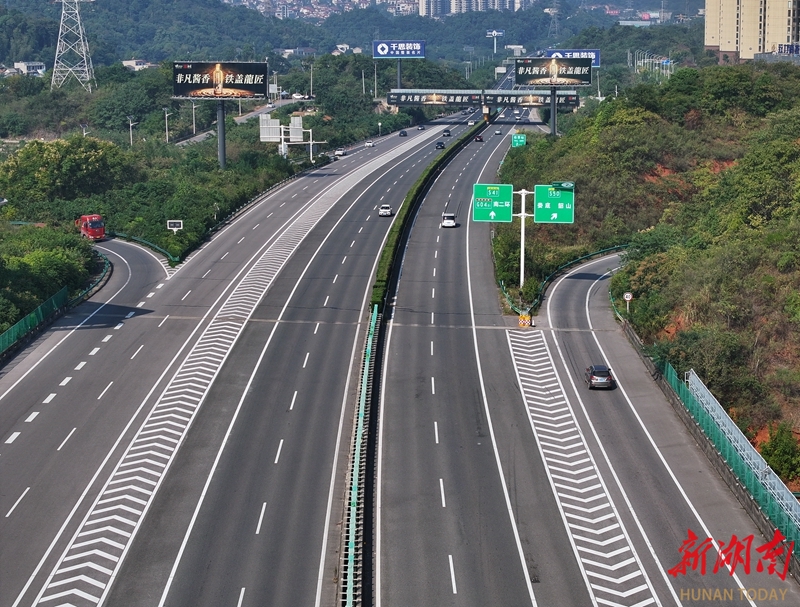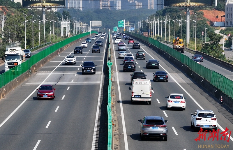 10月8日下午,正值国庆中秋假期返程高峰,长芷高速湖南湘江新区学士街道路段双向车流平稳,路面畅通无阻,进城通道通行顺畅。湖南日报全媒体记者 童迪 摄