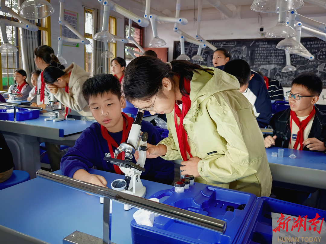 走进湘潭县花石镇花石中学,全新的生化实验室里学生正专注观察细胞结构;新建的羽毛球场上,学子们挥拍竞技、活力满满;标准田径场的白色线圈与绯红跑道相映成趣,成为校园里最亮眼的风景线。“以前是坑坑洼洼的泥沙跑道,现在训练起来特别带劲!”初三学生贺仟指着绯红的跑道兴奋地说。这所农村寄宿制学校的蜕变,正是湘潭县以“硬投入”夯实教育基础、以“软环境”激活发展动能的生动缩影。“500万元专项资金,让我们建起了新食堂和标准田径场,学生的学习生活条件彻底改善了。”校长齐敏的话语里满是欣慰。