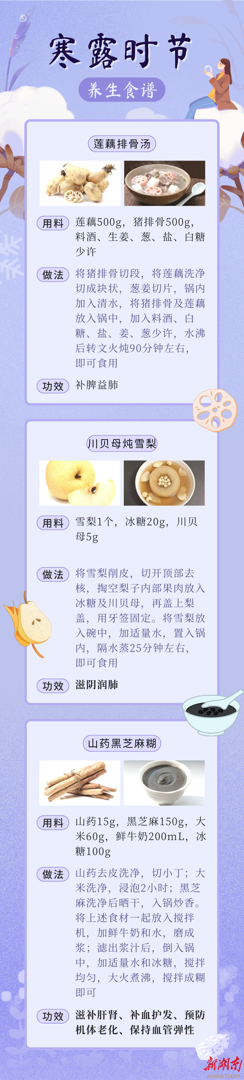 “袅袅凉风动,凄凄寒露零。”寒露至,凉风起,气温逐渐下降,气候从凉秋向寒冷的冬天过渡。此时自然界中阴阳之气开始发生转变,阳气渐消,阴气渐长,人们更应维持体内阴阳平衡,以适应自然界变化。俗话说“寒露脚不露”,中医认为,寒露养生宜从足部保暖做起,同时搭配适当的食补和运动,有助于避免秋寒的侵扰,及早预防秋冬常见病。