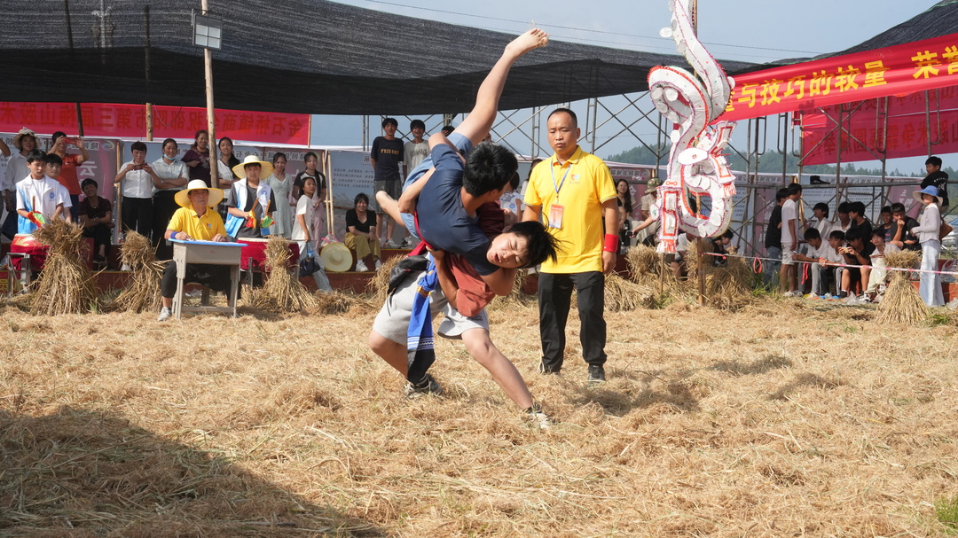 大赛激烈角逐之余,赛事承办方金石桥镇同步举办的梅山油龙非遗展演,也为各方宾客献上了一场视觉盛宴。梅山跤术和游龙两大非遗项目在金色稻田同台呈现,既是邵阳市积极探索“体育+非遗+旅游”深度融合的一次成功实践,更为当地“体育+”的高质量发展开辟了新路径。这场赛事的意义远超竞技本身,不仅是一场竞技角逐,更是一次文化传承与全民健身的生动实践,为民族传统体育的推广开辟了新路径。