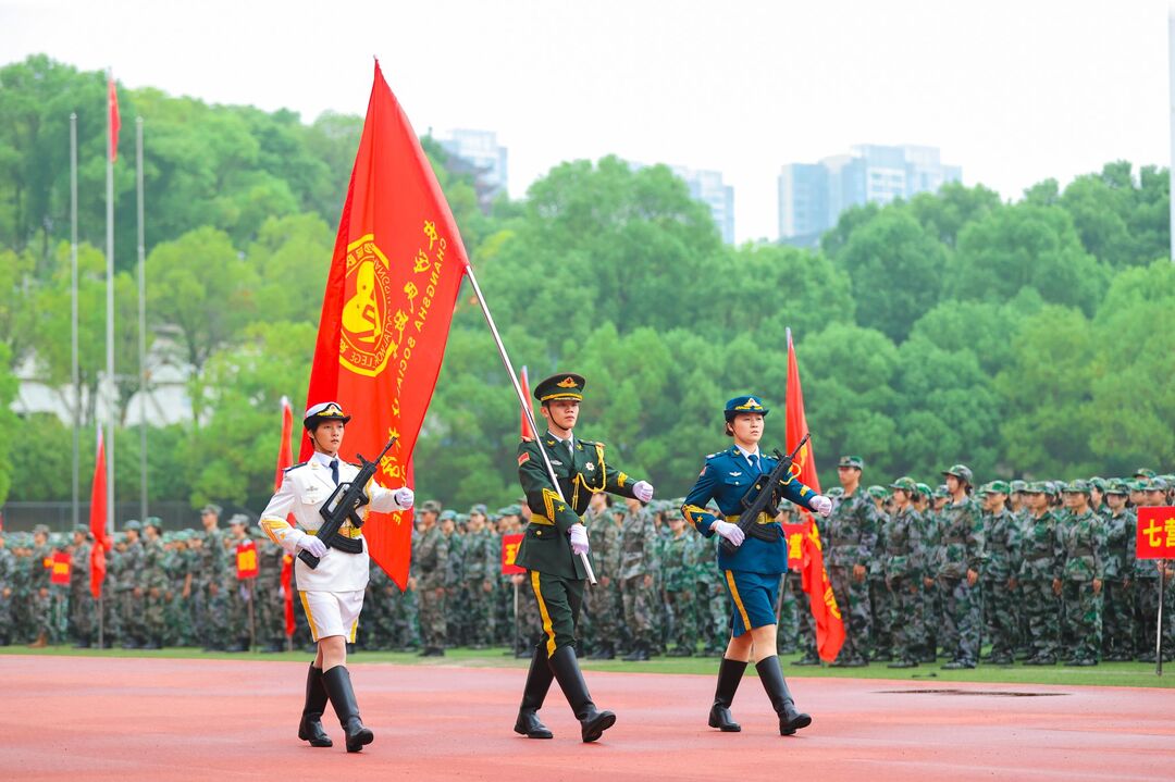 随后,军训成果汇报正式开始。伴随着《解放军进行曲》的激昂旋律,9个军训方阵依次迈着整齐的步伐通过主席台接受检阅。同学们身姿挺拔,眼神坚定,嘹亮的口号响彻校园上空,充分展现出民政学子的蓬勃朝气与昂扬斗志。战术方阵身手矫健,在模拟战场中展现严密协作的战略智慧;军体拳与匕首操表演刚柔并济,一招一式尽显钢铁纪律与蓬勃朝气,赢得现场阵阵掌声。据了解,为期15天的军训中,长沙民政职院2025级新生系统完成了队列训练、内务整理、国防教育、应急演练等多项任务,不仅锤炼了意志品质,更筑牢了爱国爱校的家国情怀。