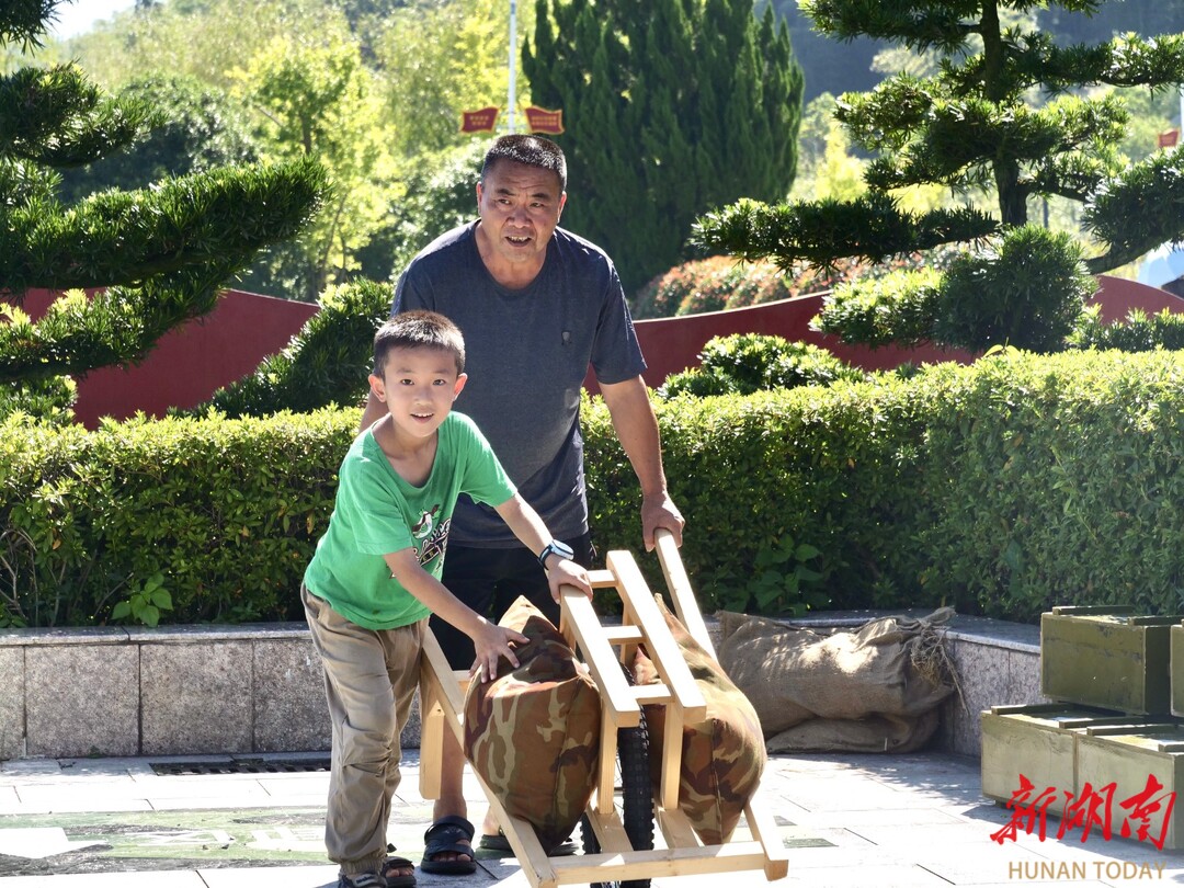 双节期间,会同县精心策划“盛世国庆 红色中秋”系列主题活动,让红色教育可感可及。粟裕故里景区内,“文物里的抗战故事”专题展开放,通过扫上面的二维码即可聆听背后的峥嵘往事,让游客在驻足凝视中触摸历史脉络。“英雄推车·支前大动员”亲子挑战赛人气爆棚,家长与孩子携手推动仿制小推车穿越“战壕”运送“物资”,在情景模拟中感悟军民鱼水情,参与家庭还能获得定制“勋章”与文创礼品。此外,“用画笔为国庆中秋添彩”等互动活动火热开展,游客们用画笔表达节日祝福和对祖国的热爱,让红色精神在互动中代代相传。