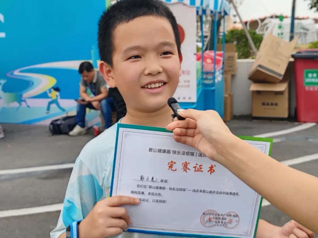 赛道沿途设置9组互动游戏点,考验默契的“双人成行”、比拼核心力量的“平板支撑”、融入君山本地文化的“知识问答”等游戏项目,让奔跑过程充满趣味与挑战。跑者无需计较成绩排名,只需按组别参与游戏、集齐3枚通关印章,即可兑换纪念品。这种“重体验、轻竞技”的形式,让运动回归快乐本源,赢得广泛赞誉。