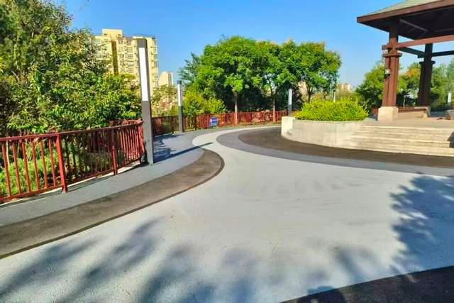 修复原有“弯月雕塑”,凸显“卢沟晓月”文化特色,打造全新视觉焦点。站在这里,既能看城望水赏美景,又能感受历史韵味,城市景观眺望体验感拉满;破损铺装换成柔性平整的沥青,行走更舒适。