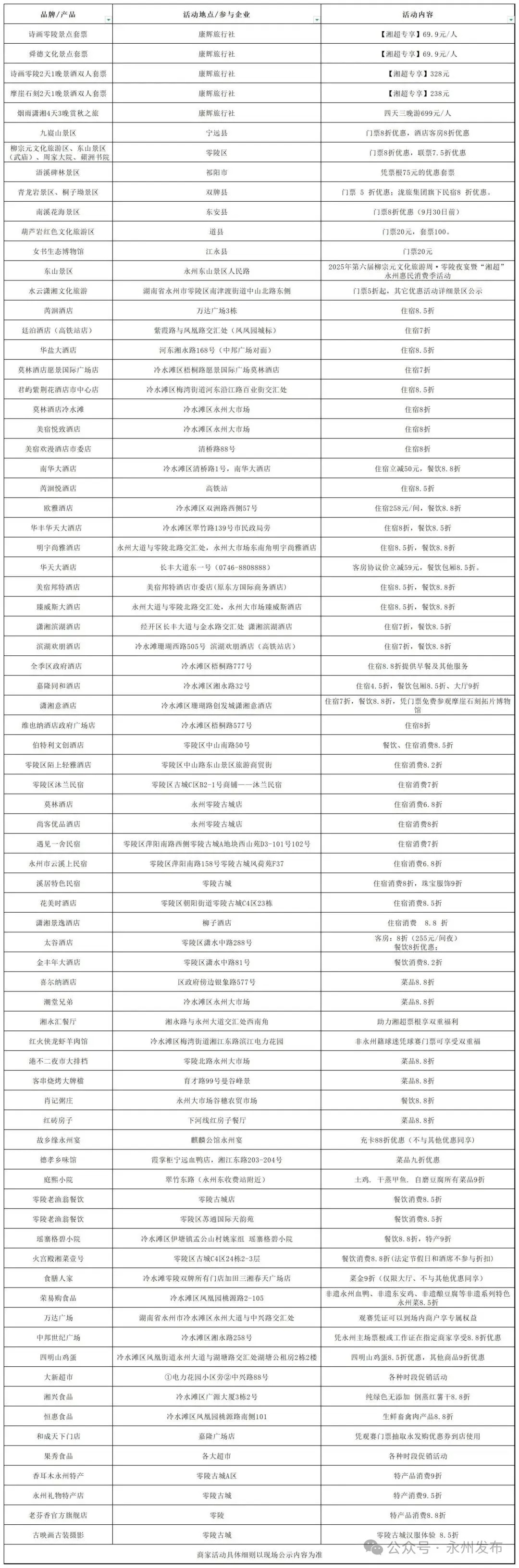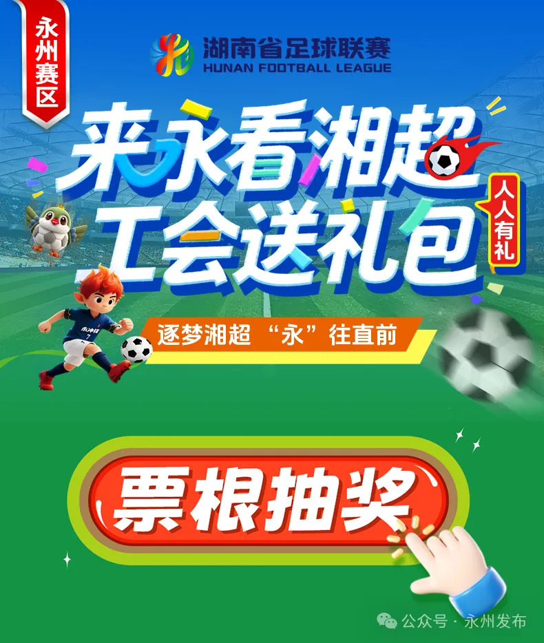 湘超(永州赛区)比赛期间,在【永发购】平台合作商家消费,享受商家折扣优惠,最低五折起。