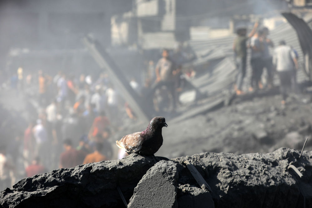 2023年10月26日,在加沙地带南部城市汗尤尼斯,一只鸽子停留在以军袭击后留下的建筑废墟上。新华社发(亚西尔·库迪摄)双方分别证实协议达成