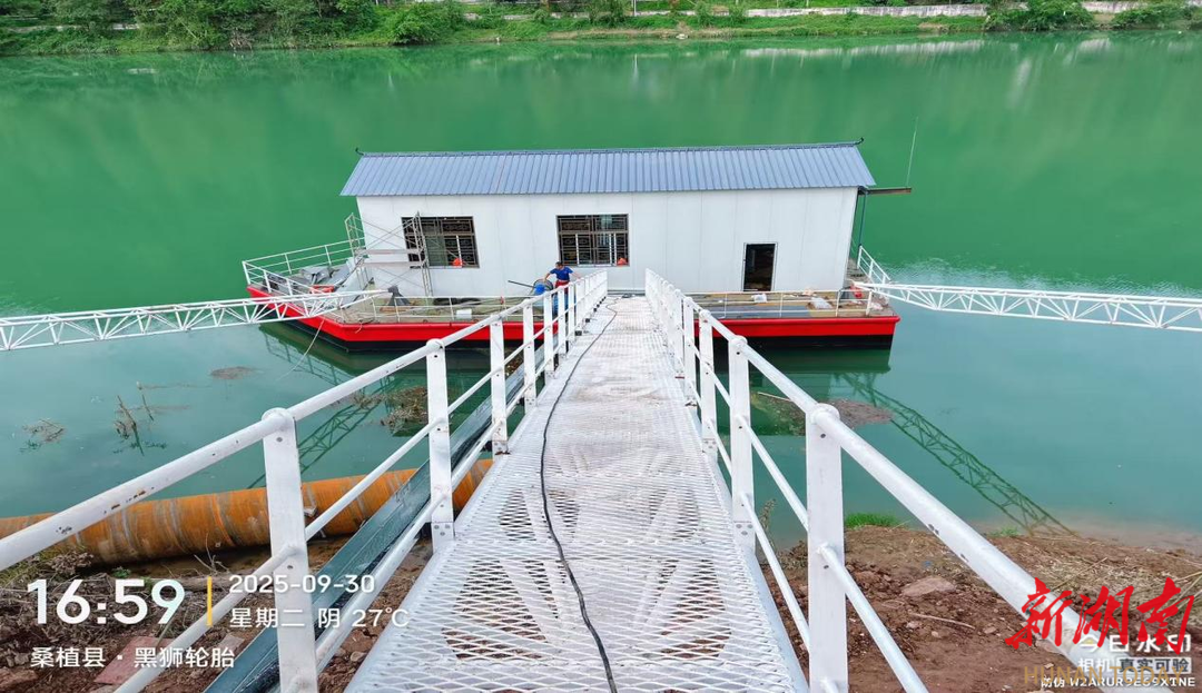 为从根本上解决洪期供水隐患,桑植县委、县政府高度重视,迅速响应。在省政府资金支持下,县住建局牵头,联合县城市供水公司及专家多次研判,最终决定引进移动供水泵船设备。项目于8月6日启动,至9月29日顺利竣工。