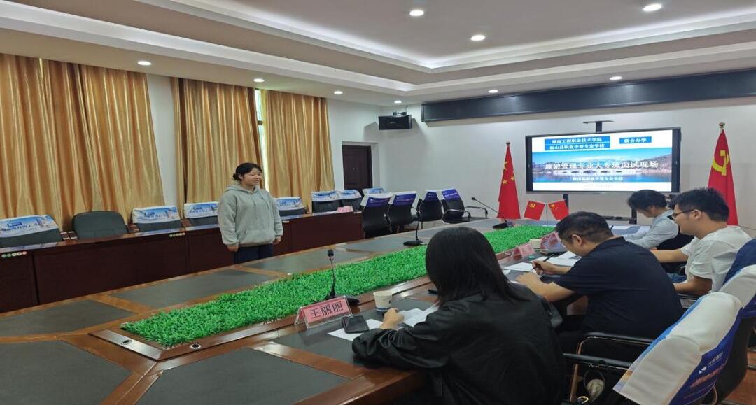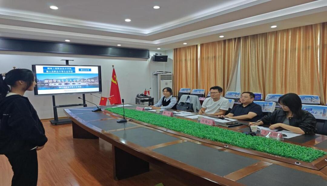 为精准选拔优质旅游管理人才,共同培育高素质专业队伍,近日,由衡山县职业中等专业学校与湖南工程职业技术学院联合举办的“2025级旅游管理专业大专班”面试工作在衡山县职业中等专业学校综合楼顺利举行。