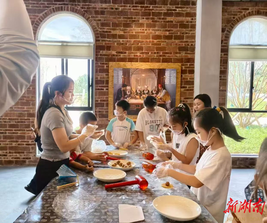 活动最火爆的当属“非遗传承·制作月饼美食”工坊。会同手工柴火月饼制作技艺今年刚入选怀化市非遗代表性项目名录,月饼师傅的现场教学引发围观。孩子们在月饼师傅指导下和面、擀皮、包馅,学习每个制作环节。刚出炉的月饼金黄酥脆,芝麻香气四溢,小游客们捧着亲手制作的月饼兴奋不已。“让孩子触摸非遗的温度,比任何说教都深刻。”一位家长边拍照边赞叹。