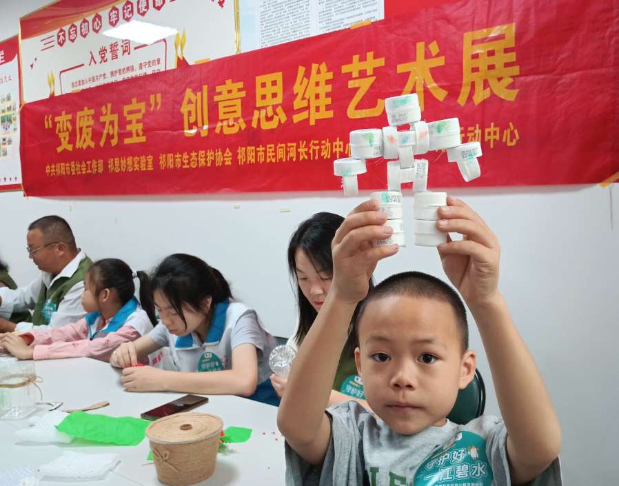 10月10日,一场以“变废为宝”为主题的少儿艺术创作展在祁阳市协会活动室举行。活动由祁阳市委社会工作部、市河长办、市水利局指导,并获湖南省生态保护联合会“长江流域‘守护好一江碧水’青少年环保联合行动小额资助计划暨财信公益伙伴计划”支持,由祁阳市生态保护协会联合市牵手志愿者协会、市河小青行动中心、市民间河长行动中心共同主办,吸引了36位“大小河长”积极参与。
