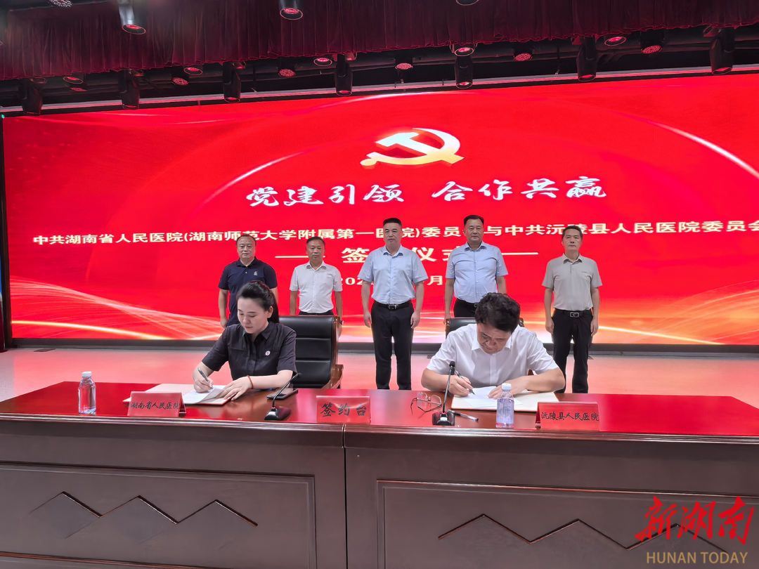 会上,中共湖南省人民医院委员会与中共沅陵县人民医院委员会签订党建共建协议。湖南省人民医院党委副书记朱丽琴宣读成立“省医沅陵临时党支部”的批文,省医沅陵临时党支部书记李诚作表态发言。