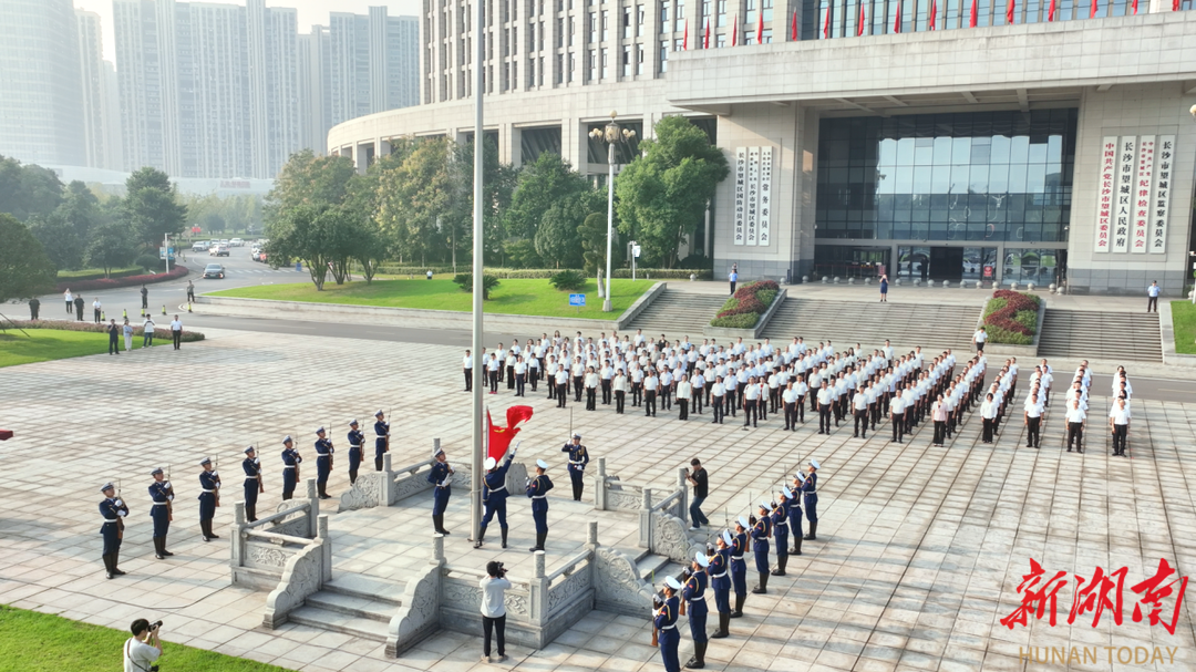 10月9日清晨,朝阳初升,晨光洒落在长沙市望城区政府升旗台,一场庄严的升旗仪式在此举行。