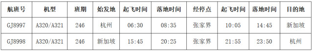 杭州-张家界-新加坡航班采用空客A320/A321机型,每周二、四、六执行往返航班,航程约4小时40分钟。新加坡是张家界主要入境旅游市场之一,在2024年张家界入境客源地中排名第七,入境游客达8.1万人次。从新加坡的多元活力,到张家界的奇峰仙境,再到杭州的湖光山色,新航线实现三地的高效连接。