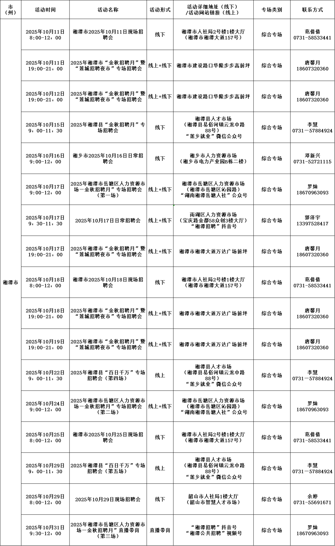 湘潭招聘活动安排来了