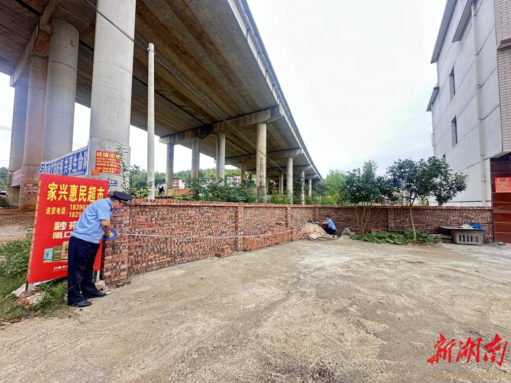 据悉,该直角围墙由涉事业主于8月擅自修建。邵阳市交通执法支队严格落实高速公路“三保三大一创”工作要求,将路政巡查与联合排查纳入常态化工作机制。9月25日,该支队高速路政大队新邵中队在日常巡查中发现该处违法构筑物后,立即启动执法程序,坚持“零容忍”态度,迅速完成调查取证、事实认定与法律告知等流程,明确指出其违法事实、违反的法律条款,责令业主限期自行拆除。