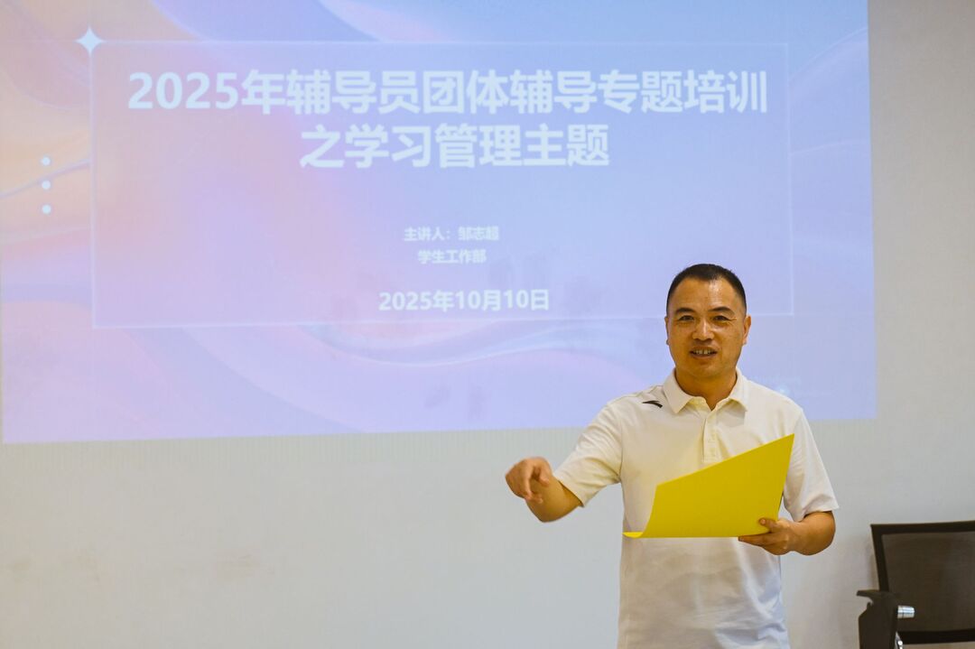 培训精准对接大一至大三学生在不同成长阶段的心理特点与需求,设置五大核心主题模块,覆盖环境适应、挫折教育、学习管理、人际交往、职业规划等关键领域。培训采用“分年级匹配、同时段并行”模式,由心理发展指导中心老师带领。10月9日,教师易艺宇围绕“环境适应篇”开展教学,助力辅导员掌握大一新生入学适应引导方法;教师苏小林以“挫折教育篇”为主题,指导辅导员如何帮助大二学生提升抗挫折能力。10月10日,培训聚焦学生学习与社交需求,教师邹志超开展“学习管理篇”培训,分享科学的学习规划与时间管理技巧;教师陈燕妮则带来“人际交往篇”课程,讲解学生人际矛盾化解与健康社交圈构建方法。10月11日,教师王鹤翔以“职业规划篇”为核心,帮助辅导员掌握大三学生职业探索、就业焦虑疏导等实用技能。
