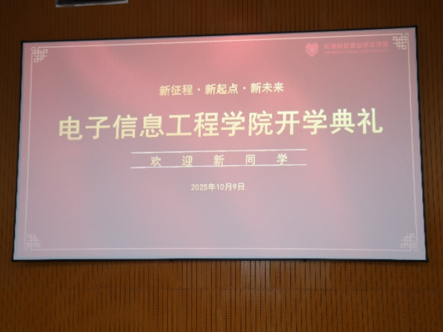 10月9日,长沙民政职院电子信息工程学院2025级新生开学典礼顺利举行。长沙民政职院电子信息工程学院院长雷翔霄、党总支书记吴文平、副院长朱志伟、党总支副书记杨婷,与专业教师代表、辅导员代表、校友代表及全体2025级新生共同出席了典礼。