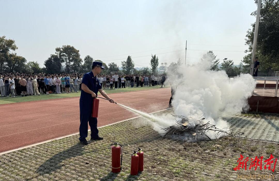 科教新报·新湖南客户端讯(通讯员 李人强 喻贺煌)近日,宁乡一中偕乐桥中学举行了消防安全应急疏散演练与灭火器实操培训活动。本次活动特别邀请了灰汤镇消防大队现场指导,为全校师生上了一堂生动而深刻的消防安全实践课。