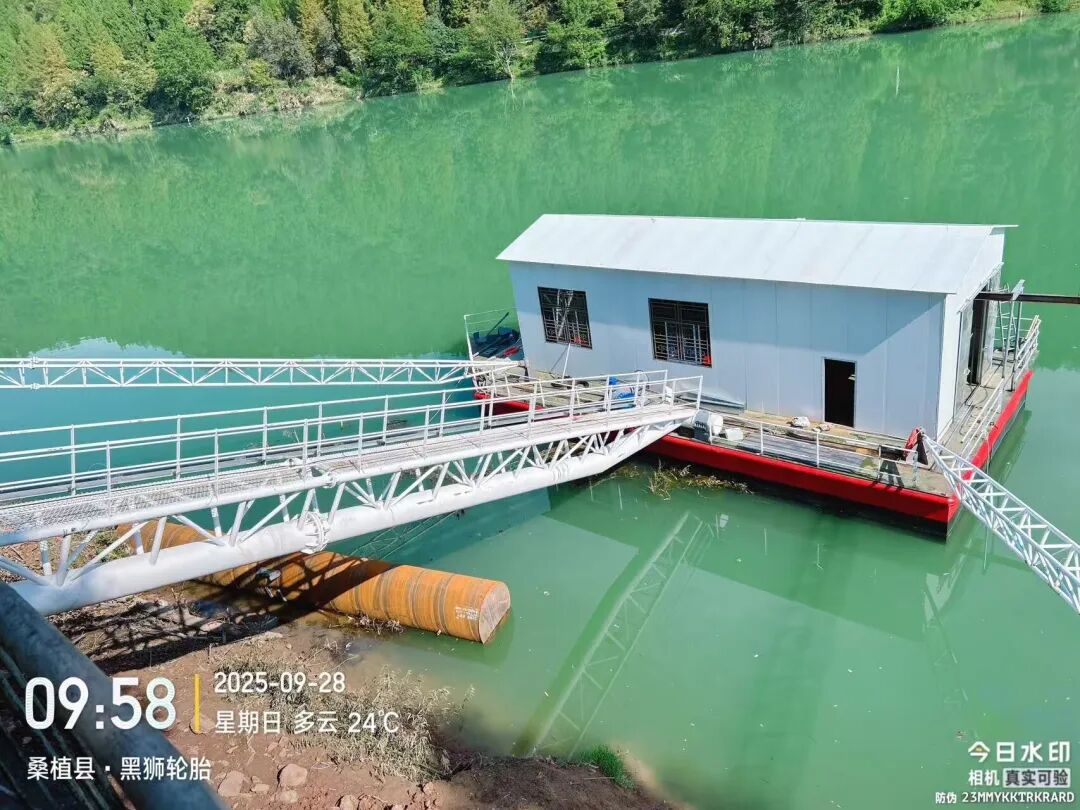 洪水退去后,桑植县住建局联合县城市供水公司及相关专家多次研判,一致认为需彻底解决取水口“遇洪易堵”问题。经多方考察,最终决定引进移动供水泵船设备。项目于8月6日启动,9月29日完工。