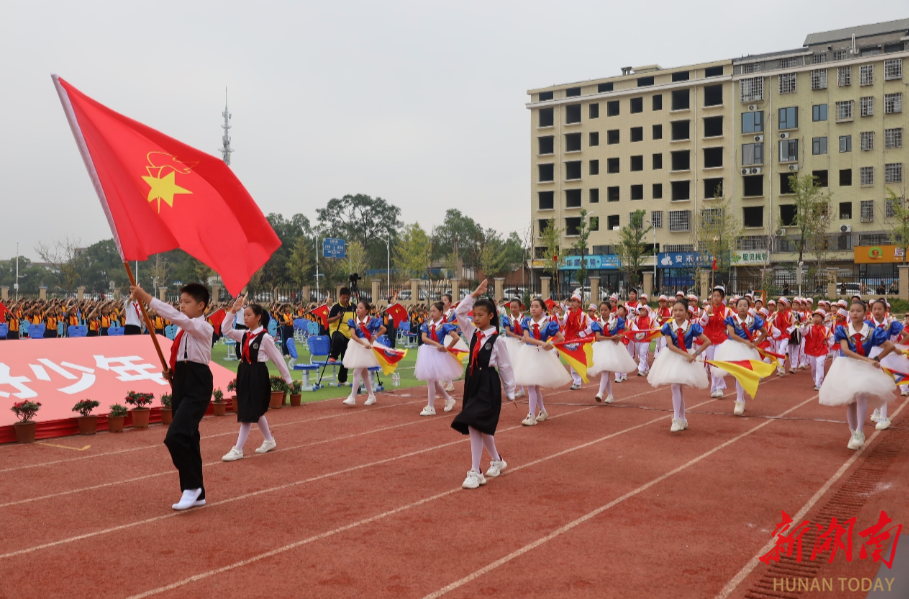 科教新报·新湖南客户端讯(通讯员 廖超)10月11日上午,在中国少年先锋队第76个建队纪念日即将到来之际,岳阳市“强国复兴有我·争当新时代好少年”2025年“十·一三”示范性主题队日暨岳阳县少先队主题队日竞赛活动在岳阳县荣湾湖小学举行。现场队旗飘扬,生机盎然,充满着红领巾的色彩。