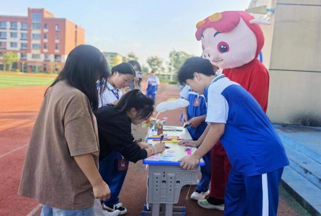 10月10日下午,四大主题心理互动活动在学校操场同步展开。“心灵树洞通行证”“解忧杂货铺”“暖心拥抱礼”以及“情绪书签・共绘心晴墙”等项目吸引了众多学生参与。大家在轻松互动中释放压力、表达情绪,感受被理解与被关怀的心理支持,也在实践中学习如何以更积极的方式应对日常困扰。